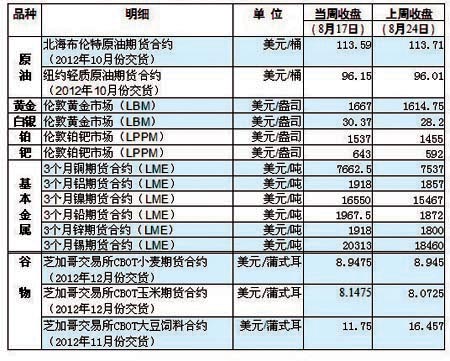 國際大宗商品期貨價格明細表[2012-08-27]