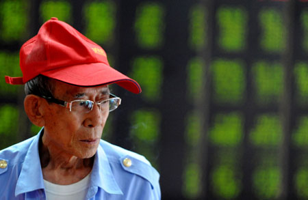 8月27日,一名股民在沈陽市一證券營業(yè)廳關注股市行情。 當日,受經濟下行壓力、企業(yè)利潤不佳、近百公司解禁洪峰來襲、轉融通規(guī)則可能出臺等多重因素影響,滬深兩市低開低走,創(chuàng)出41個月來新低,滬指報收于2055.71點,深成指報收于8402.15點,跌幅分別為1.74%和2.06%。
