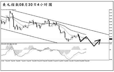 從圖上看,美元指數(shù)短線再度爆發(fā)出下行動能,整體仍然在4小時圖的下降通道中部運行,均線系統(tǒng)壓制排列。但美元指數(shù)仍然未能跌破日線圖道氏低點81.15的支撐,中線的漲勢仍在延續(xù)。短線的主次節(jié)奏向下,預(yù)計美元指數(shù)調(diào)整過后繼續(xù)下行的概率較大,并且有望直接跌破道氏低點,展開更深層次的下調(diào)。