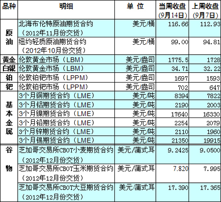 國(guó)際大宗商品期貨價(jià)格明細(xì)表[2012-09-17]