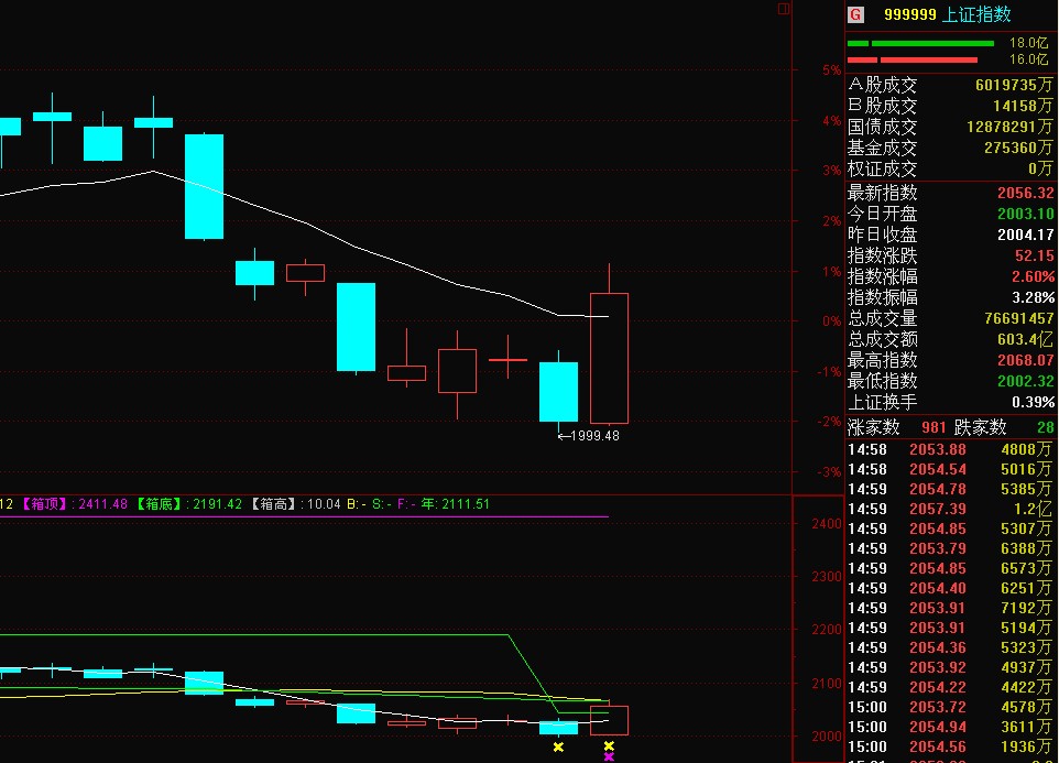 今早滬深兩市開盤時漲跌不一,滬指微幅低開,在券商、水泥、釀酒等板塊的帶動下,大盤一度發(fā)力上攻,但由于成交力度不足,上午收盤前股指回落整理。午后兩市開始急速拉升,滬指一度漲逾3%,金融、稀缺資源、煤炭石油等板塊大漲,收盤滬指漲2.60%,成交金額較之前有明顯放大。盤面上板塊全線飄紅,券商板塊暴漲5.9%,稀缺資源、水泥、煤炭石油、有色金屬、保險等板塊漲幅居前。