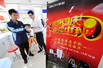 記者還發(fā)現(xiàn),“十一”假期的家電市場上,除了平板電視、DVD、手機(jī)這些傳統(tǒng)熱銷商品,單反相機(jī)、平板電腦等產(chǎn)品種類越來越豐富,高端化趨勢也越來越明顯。