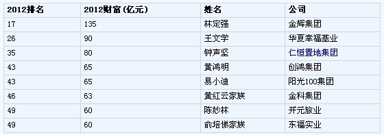 數(shù)據(jù)來(lái)源:《2012雅居樂(lè) 海南清水灣胡潤(rùn)百富榜》