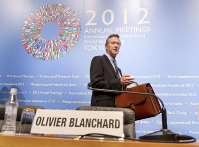 10月9日,國際貨幣基金組織(IMF)首席經(jīng)濟(jì)學(xué)家奧利維耶·布朗夏爾在日本東京宣布最新版《世界經(jīng)濟(jì)展望報告》新聞簡報。