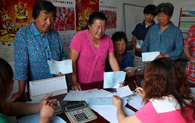 圖為北京市懷柔區(qū)懷北鎮(zhèn)東莊村村民在村委會上交新農(nóng)合醫(yī)療報(bào)銷單據(jù)。新華社發(fā)