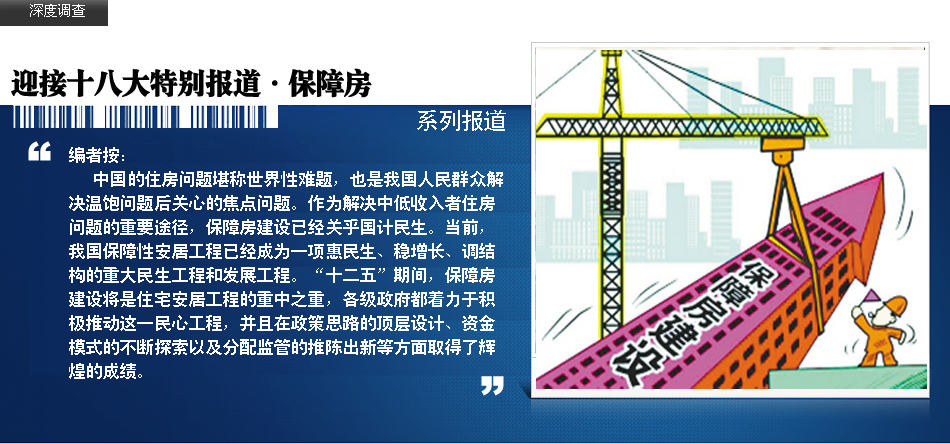 | 保障性安居工程建設一頭連著民生,一頭連著發(fā)展。自2008年底,我國實施大規(guī)模保障性安居工程建設以來,不僅讓2600多萬戶城鎮(zhèn)家庭住上了新房,近1億人口的住房條件得到改善,而且在拉動投資、改善內(nèi)需和管理通脹預期等方面,凸顯出巨大的正面效應。 | |