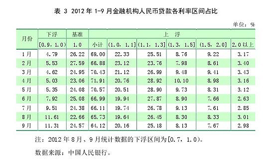 個(gè)百分點(diǎn)。執(zhí)行基準(zhǔn)利率和上浮利率的貸款占比分別為 24.57%和 64.12%,比 6 月分別下降 0.51 個(gè)和 2.87 個(gè)百分點(diǎn)。