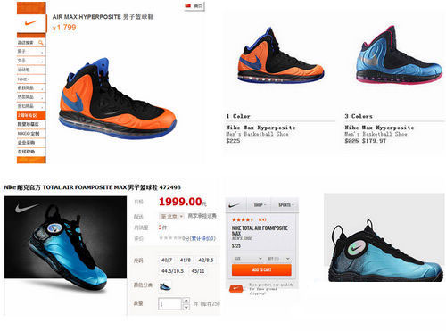 MAX的耐克男子籃球鞋,在天貓商城的耐克官方旗艦店的售價(jià)更是高達(dá)1999元人民幣。而在其美國(guó)官網(wǎng)上,該產(chǎn)品的售價(jià)同樣僅為225美元,約合人民幣1409元。該產(chǎn)品在國(guó)內(nèi)的售價(jià)也高出其在美國(guó)售價(jià)的40%。