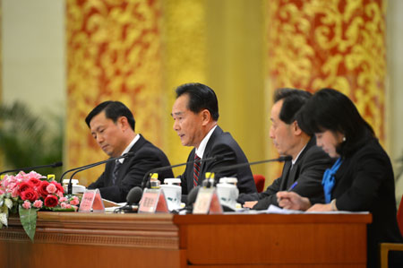 11月7日,中國共產(chǎn)黨第十八次全國代表大會新聞中心在北京舉行首次新聞發(fā)布會。這是大會新聞發(fā)言人蔡名照(左二)在介紹情況。 蔡名照在回答記者提問時說,今年以來,面對復(fù)雜嚴峻的國內(nèi)外環(huán)境,我們堅持穩(wěn)中求進的工作總基調(diào),加強和改善宏觀調(diào)控,特別是5月份以來出臺了一系列預(yù)調(diào)微調(diào)的政策措施,對增強市場信心、促進經(jīng)濟企穩(wěn)發(fā)揮了積極作用。