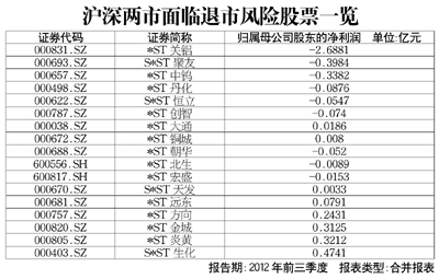 實際上,除了*ST朝華和*ST宏盛之外,多家ST類公司尤其是面臨終止上市風險的ST類公司,均在近期不約而同地加快了重組保殼步伐,而促它們加快重組步伐的,正是滬深交易所劃下的“12·31”的“最后通牒”。根據(jù)滬深交易所此前公布的新退市方案,在2012年1月1日之前已暫停上市的上市公司,如果未能在2012年12月31日之前恢復上市,將被終止上市。