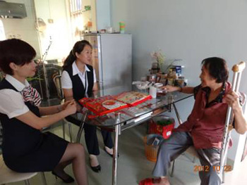 在珠海市著名文學創(chuàng)作家葉昌的遺孀、獨居老人韓秀坤家中,新華保險理賠關懷公益志愿服務會的志愿者與老人促膝談心 |