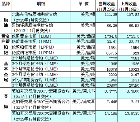 國際大宗商品期貨價格明細(xì)表[2012-11-26]