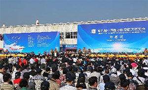圖為第九屆中國航空航天博覽會開幕式現(xiàn)場。本屆博覽會有114架飛行器集結(jié)。 |