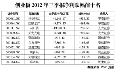 統(tǒng)計(jì)還顯示,2011年上市的128家創(chuàng)業(yè)板企業(yè)中,有33家當(dāng)年年報(bào)業(yè)績(jī)出現(xiàn)下滑,2010年上市的117家創(chuàng)業(yè)板企業(yè)中,有25家當(dāng)年業(yè)績(jī)出現(xiàn)下滑。也就是說(shuō),創(chuàng)業(yè)板355家上市公司中,有85家在上市當(dāng)年年報(bào)或者三季報(bào)就出現(xiàn)了業(yè)績(jī)下滑。