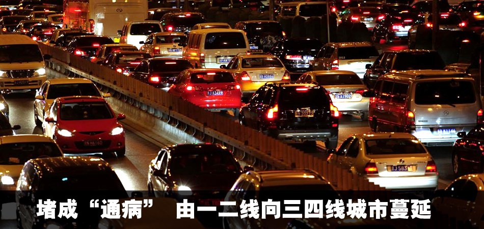 不光是大城市,近年來三四線城市甚至部分鄉(xiāng)鎮(zhèn)也開始堵車。記者近日在山東、四川等地經(jīng)濟條件相對不發(fā)達的多個縣采訪時了解到,每天早晚上下班高峰、周末、節(jié)假日等,縣城幾條主要干道都會出現(xiàn)不同程度擁堵,有時過一個路口需要20多分鐘。
