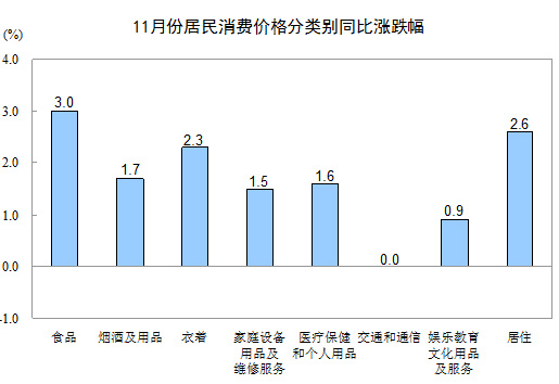 據(jù)測算,在11月份2.0%的居民消費價格總水平同比漲幅中,去年價格上漲的翹尾因素約為0.3個百分點,新漲價因素約為1.7個百分點。