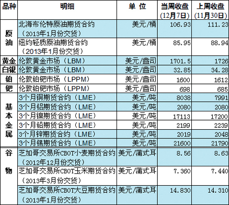 國(guó)際大宗商品期貨價(jià)格明細(xì)表[2012-12-10]