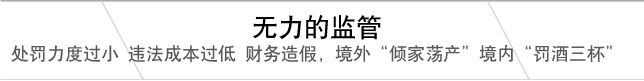境內(nèi)"罰酒三杯" 上海交通大學(xué)高級金融學(xué)院副院長朱寧認(rèn)為,加強(qiáng)監(jiān)管不能僅僅停留在道義上的譴責(zé),關(guān)鍵是要追究責(zé)任!霸诿绹,安然因造假一日之內(nèi)破產(chǎn)倒閉;在香港,保薦機(jī)構(gòu)兆豐資本因未盡責(zé)被撤銷保薦牌照,并被罰款4200萬港元;而在A股市場,綠大地造假,各大責(zé)任主體逃之夭夭,股票依舊堂而皇之地掛牌交易! |