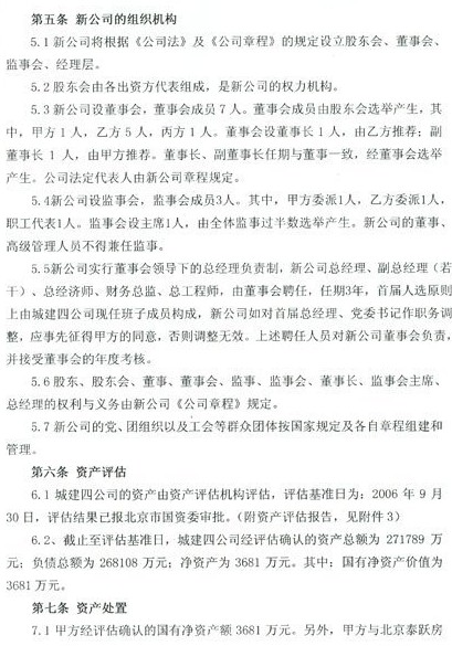 按照記者獲取的《北京城建四建設(shè)工程有限責(zé)任公司資產(chǎn)重組協(xié)議書》顯示,新公司的注冊(cè)資本和股權(quán)結(jié)構(gòu)為北京城建集團(tuán)以國(guó)有資產(chǎn)出資6000萬(wàn)人民幣,占股20%;瑞豐恒基以貨幣出資2.25億元,占股75%;于天恩等以貨幣出資1500萬(wàn)元,占股5%。