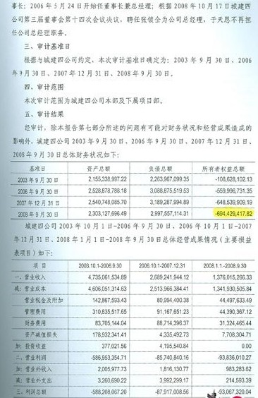 按照重組后的審計(jì),即便是在風(fēng)頭正旺的2007年,城建四也已錄得虧損十余億元。