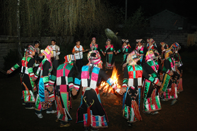 節(jié)日里活動(dòng)內(nèi)容豐富多彩,除夕之夜,老人以酒、肉、粑粑祭祀天地祖先神靈,為感謝耕牛一年勞作,家犬給人類帶來(lái)谷種,先給它們品嘗一點(diǎn)年節(jié)食品。人們身著節(jié)日盛裝,來(lái)到選定的場(chǎng)址,聚集在一起吹笙、笛,彈篾弦、三弦等樂(lè)器,載歌載舞,通宵達(dá)旦,歡慶佳節(jié)。
