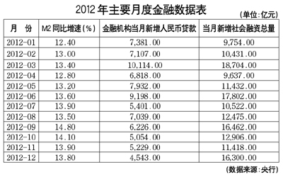 2012年末,廣義貨幣(M2)余額97.42萬億元,同比增長13.8%,比11月末低0.1個(gè)百分點(diǎn),比上年末高0.2個(gè)百分點(diǎn)。中金公司首席經(jīng)濟(jì)學(xué)家彭文生指出,雖然2012全年M2增速略低于14%的年初預(yù)期目標(biāo),但近期總體貨幣條件維持穩(wěn)中略松態(tài)勢。
