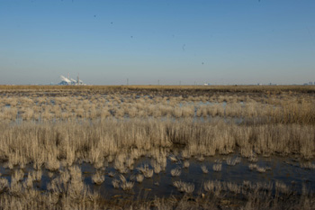 天津市北大港濕地自然保護(hù)區(qū)冬季濕地蘆葦整體情況。記者