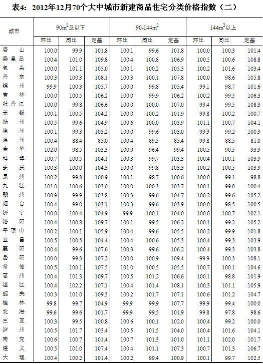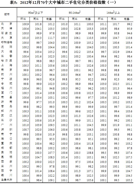 (二)與上年同月相比,70個(gè)大中城市中,價(jià)格下降的城市有42個(gè),持平的城市有3個(gè),上漲的城市有25個(gè)。12月份,同比價(jià)格上漲的城市中,漲幅均未超過(guò)5.5%,漲幅比11月份回落的城市有1個(gè)。