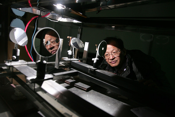 圖說:莊國順教授在儀器間測試數(shù)據(jù)。 圖片來源:復旦大學 劉暢/攝