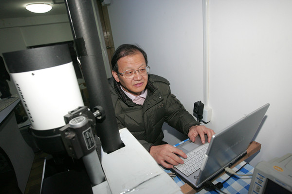 圖說:莊國順教授在位于復旦第四教學樓樓頂?shù)拇髿獗O(jiān)測實驗室里檢查儀器。圖片來源:復旦大學 劉暢/攝