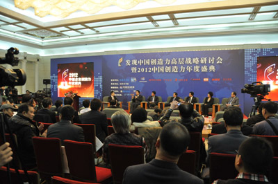 19日,“發(fā)現中國創(chuàng)造力高層戰(zhàn)略研討會暨2012中國創(chuàng)造力年度盛典”在北京人民大會堂舉行。本版攝影 郝光洲