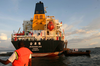 中國遠(yuǎn)洋旗下的“金廣嶺”輪。新華社發(fā) |