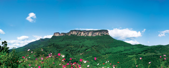 除了豐富的高句麗遺跡外,五女山主峰海拔824米,山峰酷似玲瓏翠屏,四周懸崖峭壁,巍峨險峻。山頂?shù)貏萜教梗临|(zhì)肥活,草木茂盛。南面有一隘口,乘纜車可達山頂。站在東端峰巔,遙望遼寧省最大的水庫桓龍湖,煙波浩渺,云天山水,渾然一體。