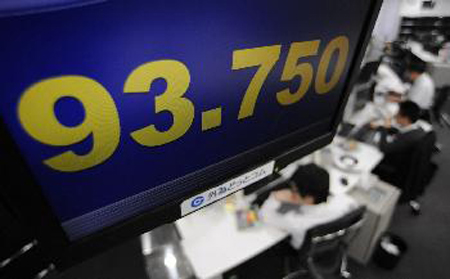 2月6日,在日本東京的一家股市交易所,工作人員在顯示美元兌日元匯率的電子顯示屏下工作。 當日,東京外匯市場美元兌日元匯率升破1比93,日元走低提振出口類股推升6日日經(jīng)股指飆漲3.77%。 今年年初以來,由于安倍傾向于激進的貨幣政策,日元對各主要貨幣一直呈貶值走勢。日元貶值令出口類企業(yè)盈利前景向好。 目前,市場多數(shù)觀點認為,如果日本政府維持貨幣激進立場,日元走弱趨勢一段時間還將持續(xù)。