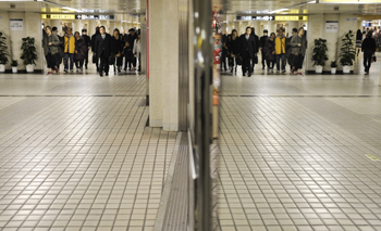 在日本東京,行人走過地下通道。新華社發(fā)(關賢一郎 攝) |