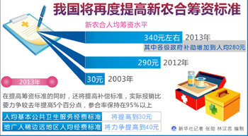衛(wèi)生部部長(zhǎng)陳竺在21日召開(kāi)的全國(guó)基層衛(wèi)生與新農(nóng)合工作會(huì)議上說(shuō),2013年新農(nóng)合人均籌資水平提高到340元左右,參合率保持在95%以上,政策范圍內(nèi)住院報(bào)銷比例達(dá)到75%,實(shí)際補(bǔ)償比力爭(zhēng)提高5個(gè)百分點(diǎn),全國(guó)平均達(dá)到60%左右,縣鄉(xiāng)兩級(jí)實(shí)際住院補(bǔ)償比分別達(dá)到60%和75%等標(biāo)準(zhǔn)。此外,今年我國(guó)還將加快商業(yè)保險(xiǎn)機(jī)構(gòu)參與新農(nóng)合經(jīng)辦服務(wù),開(kāi)展利用人均15元左右的新農(nóng)合基金購(gòu)買大病保險(xiǎn)試點(diǎn)。