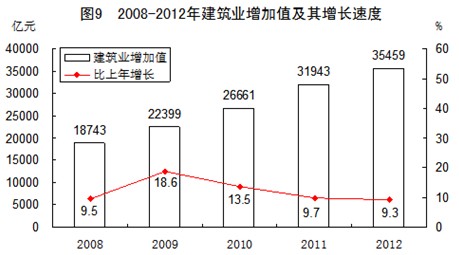全年全社會(huì)建筑業(yè)增加值35459億元,比上年增長(zhǎng)9.3%。全國(guó)具有資質(zhì)等級(jí)的總承包和專(zhuān)業(yè)承包建筑業(yè)企業(yè)實(shí)現(xiàn)利潤(rùn)4818億元,增長(zhǎng)15.6%,其中國(guó)有及國(guó)有控股企業(yè)1236億元,增長(zhǎng)21.9%。