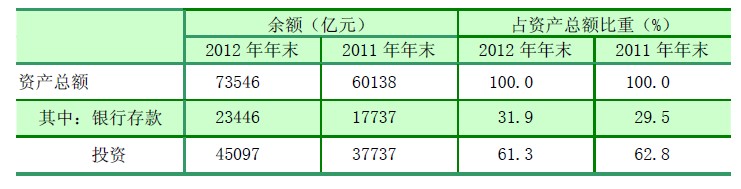 2012 年年末,全部金融機構(gòu)(含外資金融機構(gòu),下同)本外幣各項存款余額為94.3