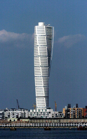 歐洲前衛(wèi)住宅摩天大廈馬爾默市的標(biāo)志——“旋轉(zhuǎn)中心”。記者