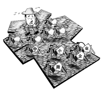 除了“稅負(fù)重”之外,“融資難”是中小微企業(yè)反映最多、最集中、呼聲最高、矛盾最突出的問題。據(jù)統(tǒng)計(jì),目前上海中小企業(yè)90%以上融資依賴銀行貸款,而商業(yè)銀行向小企業(yè)貸款量不足其放貸總量的20%。尤其是小微企業(yè),融資授信少、渠道少、成本高,銀行貸款難以得到,銀行外的融資機(jī)構(gòu)貸款利率普遍高出銀行數(shù)倍,一般情況下,小微企業(yè)都難以承受。