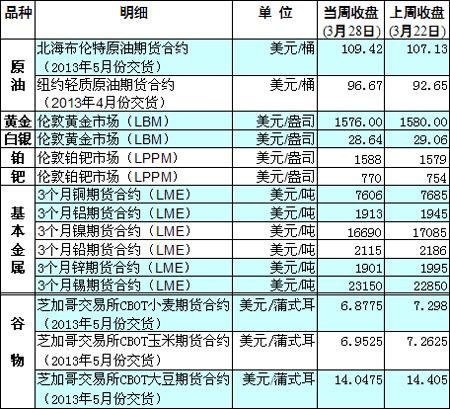 國際大宗商品期貨價格明細表[2013-04-01]