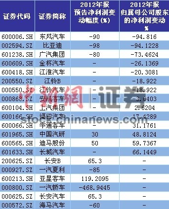 逾半數(shù)上市車企2012年業(yè)績下滑 東風(fēng)汽車凈利降逾9成