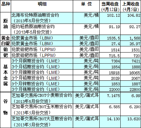 國際大宗商品期貨價(jià)格明細(xì)表[2013-04-15]