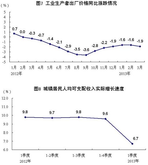 2012年各季度及2013年1季度GDP環(huán)比增速分別為1.6%、1.9%、2.1%、2.0%和1.6%。