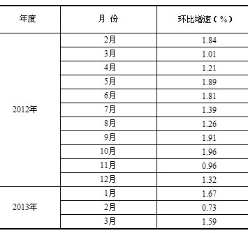 根據(jù)季節(jié)調(diào)整模型自動(dòng)修正程序,對(duì)2012年2月份以來的固定資產(chǎn)投資(不含農(nóng)戶)環(huán)比增速進(jìn)行修訂。修訂結(jié)果及2013年3月份環(huán)比數(shù)據(jù)如下: