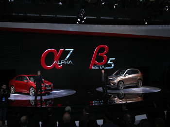 在國際化產(chǎn)品開發(fā)體系下研發(fā)的量產(chǎn)概念車型α7、β5。陳彥飛 攝 |