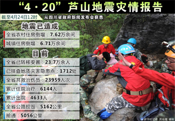 ——截至24日14時(shí),蘆山地震共計(jì)造成196人死亡,21人失蹤,11470人受傷。