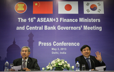 5月3日,第16次東盟與中日韓“10+3”財長和央行行長會議在印度首都新德里附近的大諾伊達(dá)舉行。會議審議通過了將10+3宏觀經(jīng)濟(jì)研究辦公室(AMRO)升級為國際組織的協(xié)議草案和旨在加強(qiáng)清邁倡議多邊化(CMIM)危機(jī)救助和預(yù)防功能的協(xié)議修訂稿,并批準(zhǔn)了中方提出的研究促進(jìn)基礎(chǔ)設(shè)施融資債券發(fā)展的新倡議。