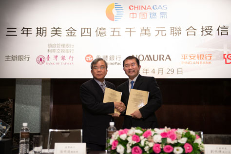 家銀行于臺北市舉行銀行團聯(lián)合授信簽約儀式,簽訂了額度4.5億美元三年期的聯(lián)合授信協(xié)定,以用於集團大陸地區(qū)的燃氣項目發(fā)展。