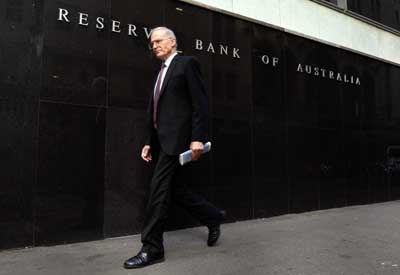 圖為當(dāng)日一行人走過澳大利亞央行門口。